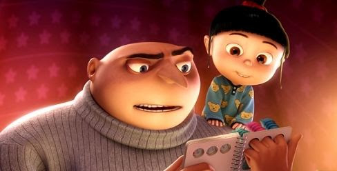 Gru (Steve Carell) reluctantly reads Sleepy Kittens as Agnes (Elsie Fisher) looks